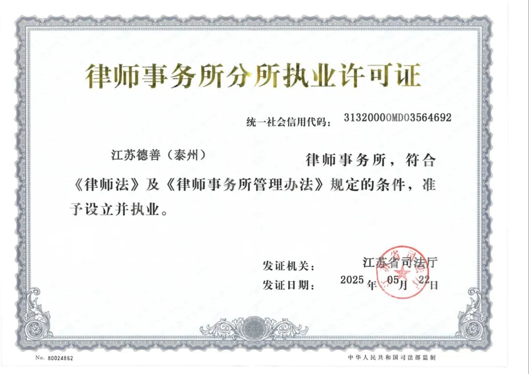 凤城泰州,祥泰之州。这座位于长江之滨、承袭千年文脉、充满经济活力的城市,正迎来法治力量的新注脚——我们怀着热忱与使命,郑重宣布:江苏德善(泰州)律师事务所正式设立。